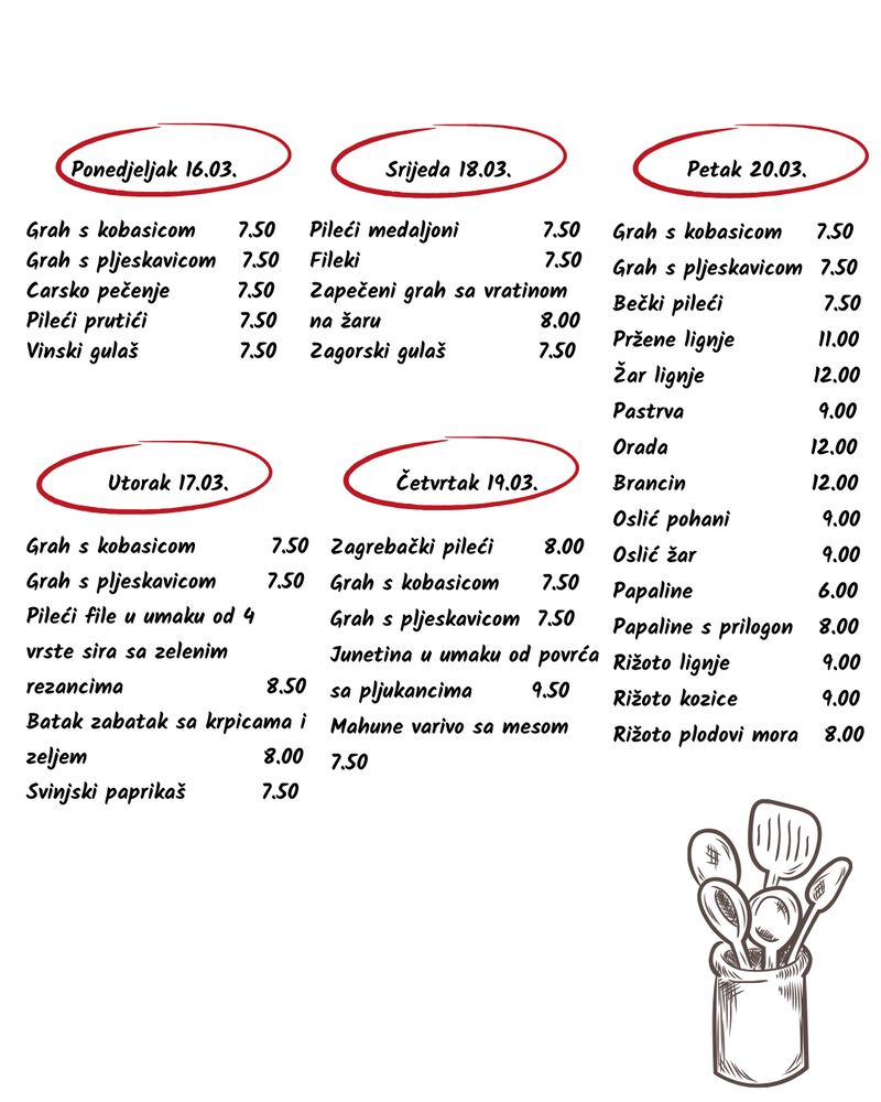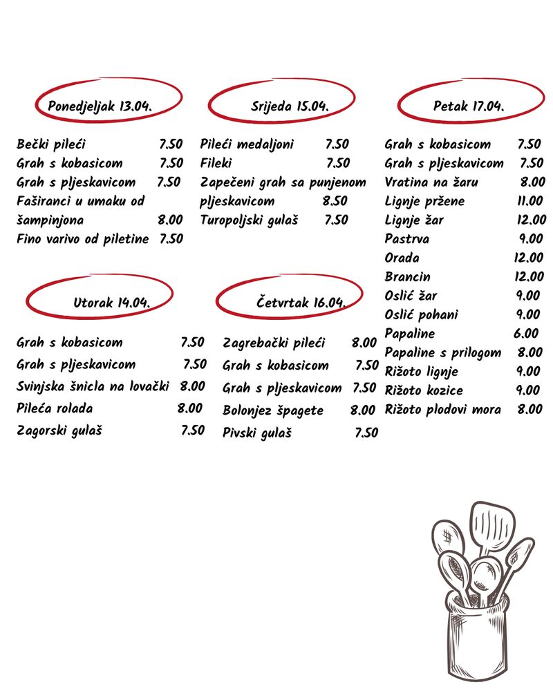 U našoj ponudi možete uživati u gablecima, roštilju, morskim plodovima, toplim obrocima, salatama, desertima i još mnogo toga.